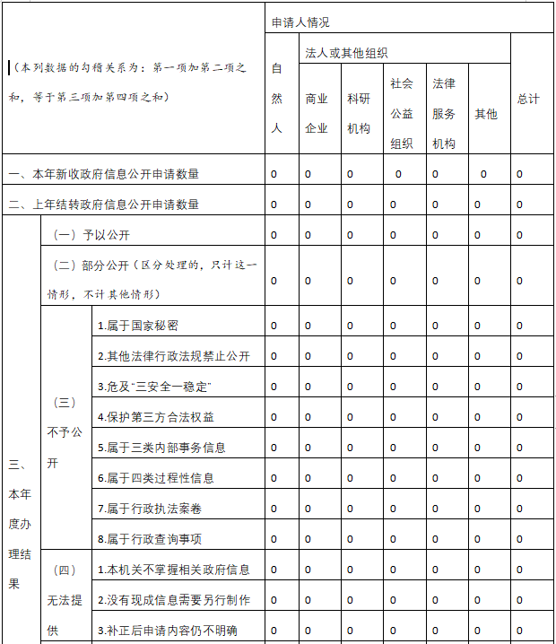 三、收到和处理政府信息公开申请情况