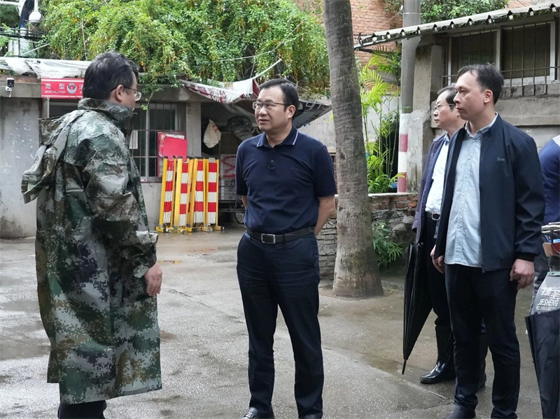 梁栋一行深入五一中路机电宿舍、打铁垱巷民房、上海新村小区、下河里民房等重点风险隐患点,实地察看防汛防台风工作开展情况,详细了解人员转移、干部包片、应急准备等情况。