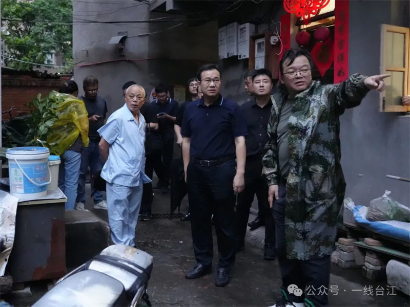 台江区委书记梁栋一行在打铁垱巷民房实地察看防汛防台风工作开展情况