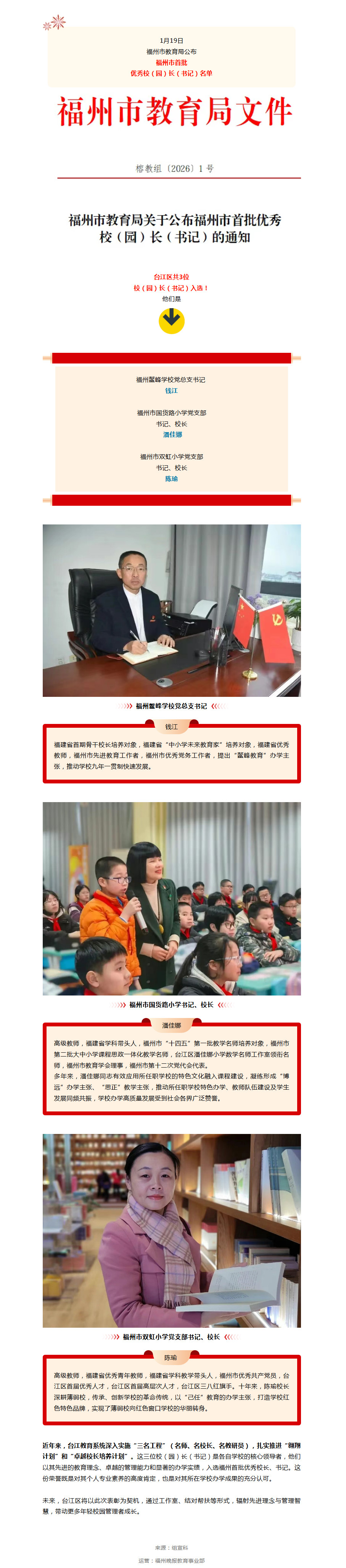 福州市公布首批优秀校长、书记名单,台江3人入选!