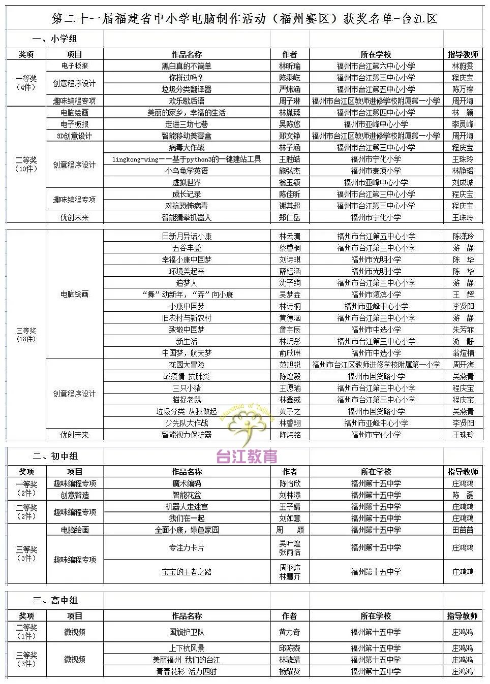 祝贺福州台江区这些同学获奖了