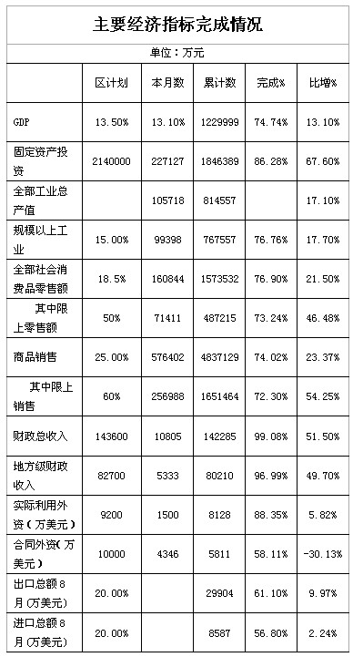 台江区2010年第三季度统计信息