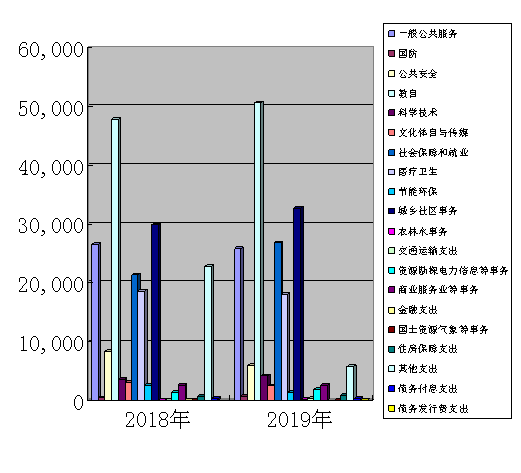一般公共预算支出中,一般公共服务29419万元,比上年增支3623万元,增长14.04%;国防475万元,比上年减支253万元,下降34.75%;公共安全6715万元,比上年增支801万元,增长13.54%;教育61532万元,比上年增支10912万元,增长21.56%;科学技术5280万元,比上年增支1149万元,增长27.81%;文化体育与传媒2505万元,比上年增支16万元,增长0.64%;社会保障和就业30165万元,比上年增支3376万元,增长12.6%;卫生健康20995万元,比上年增支2926万元,增长16.19%;节能环保2759万元,比上年增支1461万元,增长112.56%;城乡社区事务40969万元,比上年增支8169万元,增长24.91%;农林水事务3865万元,比上年增支3745万元,增长3120.83.%;交通运输支出5万元, 比上年减支319万元,下降98.46%;资源勘探电力信息等事务2593万元,比上年增支706万元,增长37.41%;商业服务业等事务1941万元,比上年减支631万元,下降24.53%;自然资源海洋气象等支出290万元,比上年增支262万元,增长935.71%;住房保障支出905万元,比上年增支48万元,增长5.6%;灾害防治及应急管理支出989万元;债务付息支出556万元,比上年增支311万元,增长126.94%;债务发行费支出20万元,增长400%。