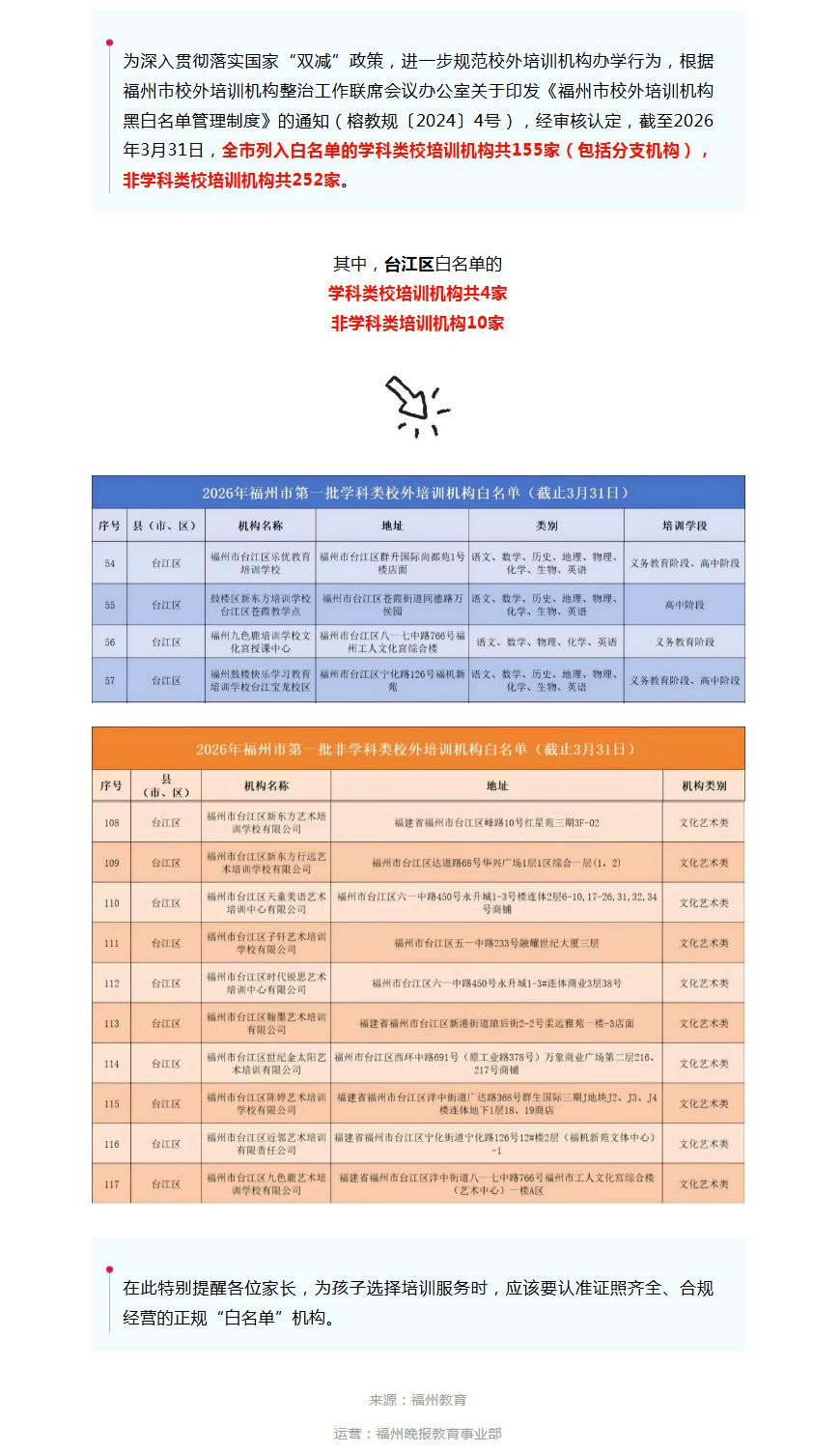 家长速存!台江区最新校外培训机构白名单出炉
